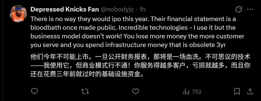 尤其是,IPO背后还背着奥特曼的“6000亿美元”,她不确定未来几年是否真的需要如此巨额的AI服务器投入,以及增长正在放缓的收入能否支撑这些承诺。