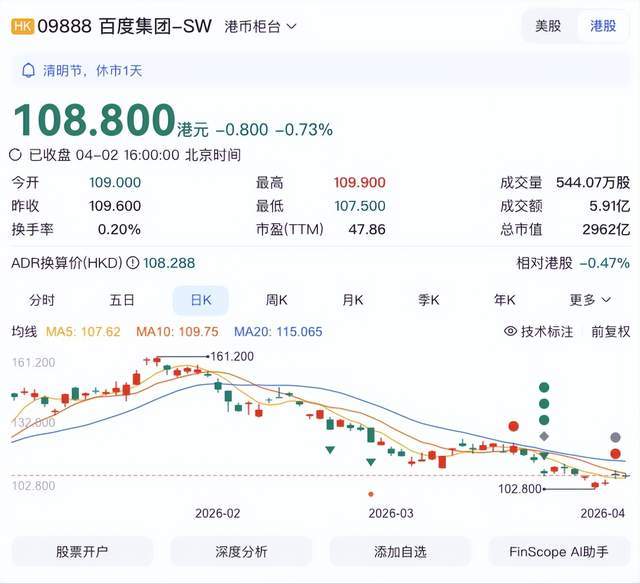 但与此同时,另一个数字同样不容忽视:2026年1月至今,百度港股从高点回调约32%,市值从近4400亿港元回落至2962亿港元。一边是AI资产的密集释放,一边是资本市场的观望甚至撤退,市场的核心疑虑只有一个:AI,到底能不能撑起百度的未来?