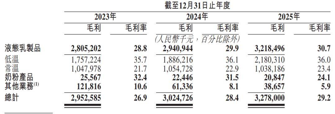新乳业聚焦高毛利的低温液态乳制品,该部分收入占比从2023年的44.8%提升至2025年的53.8%,毛利率约36%,远高于常温产品的23%。然而,这种以利润换规模的策略,在激烈的市场竞争中能持续多久,需要打上一个大大的问号。