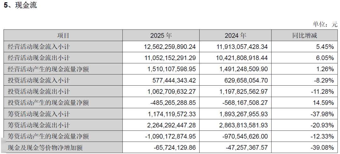 从资金需求看,新乳业面临紧迫的偿债压力。除了高企的短期负债,新乳业还有“新乳转债”兑付压力。2025年,新乳业筹资活动现金流量净额为-10.9亿元,同比下降12.33%,银行借款规模收缩,A股再融资渠道可能受限,转而寻求港股融资以填补资金缺口。此次IPO募资用途中,“用于营运资金及其他一般企业用途”也直白地揭示了其补充流动性的需求。