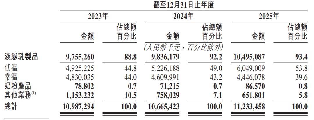根据招股书披露,新乳业在2023年至2025年间,营业收入分别为109.87亿元、106.65亿元和112.33亿元,三年复合年增长率仅为1.1%。这意味着,在过去的三年里,新乳业的营收规模几乎是在原地踏步。