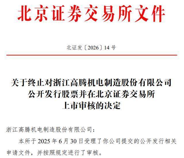 瑞财经 王敏 4月8日,据北交所官网,浙江高腾机电制造股份有限公司(以下简称“高腾机电”)北交所IPO终止,因公司主动撤回。