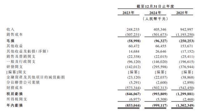2023年、2024年和2025年,清陶能源的营业收入分别为2.48亿、4.05亿和9.43亿元,相应的净亏损分别为8.53亿、9.99亿和13.02亿元。