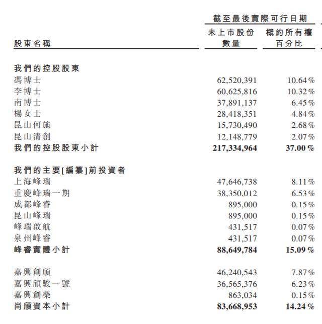 清陶能源在香港上市前的股东架构中,4位创始人冯玉川博士、李峥博士、南策文博士、杨帆为一致行动人,合计持股37%,为控股股东。