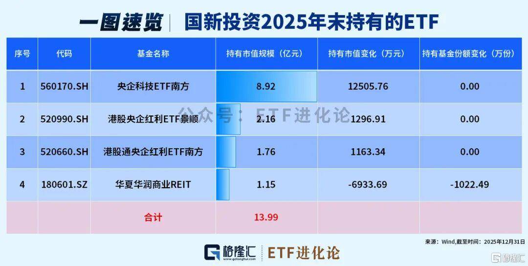 国新投资2025年年末重仓:央企科技ETF南方、港股央企红利ETF景顺和港股通央企红利ETF南方。