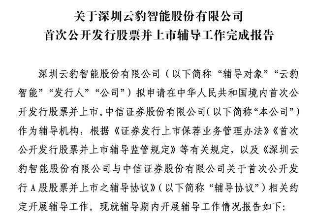 瑞财经 吴文婷近日,深圳云豹智能股份有限公司(以下简称 “云豹智能”)披露IPO辅导工作完成报告,辅导机构为中信证券股份有限公司。