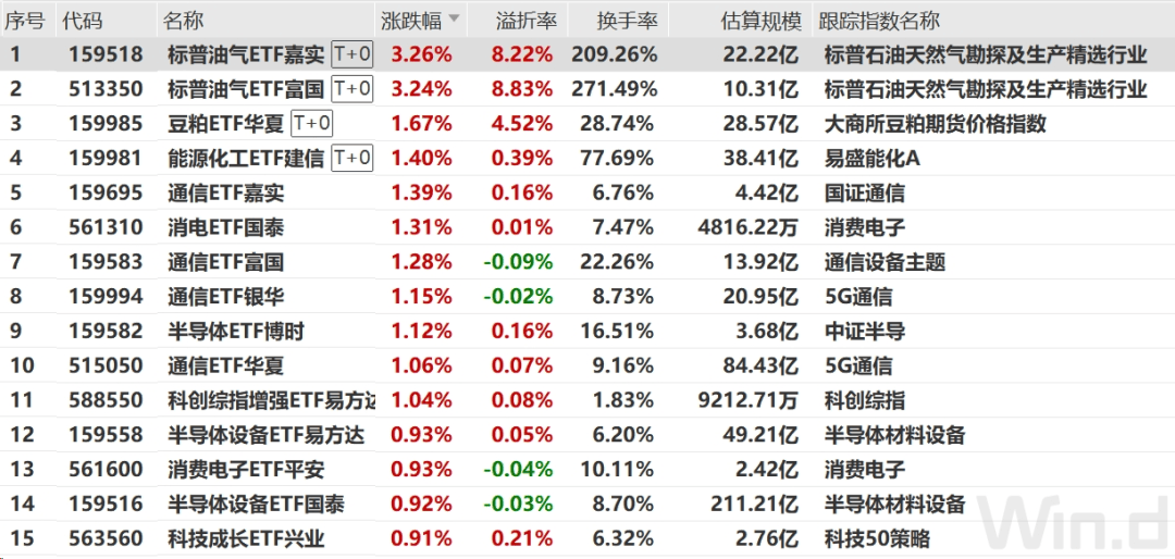 此外,通信、半导体、消费电子相关ETF涨幅居前。