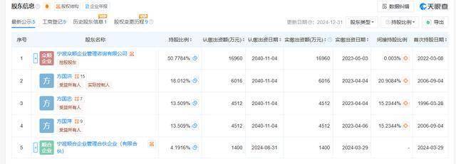股权方面,月立集团控股股东为宁波众顺企业管理咨询有限公司,直接持股50.8%。宁波众顺企业管理咨询有限公司则由方国洪、方国萍、方国忠分别持股40%、30%、30%。其中,方国洪担任董事长,总经理。