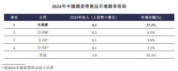 红星资本局注意到,与公司其他产品相比,外界更为熟悉的则是“80后”“90后”的童年回忆背背佳。可孚医疗在招股书中披露,2024年,包括背背佳在内的矫姿带产品年收入为5亿元,市场份额达到27.2%,远高于第二名8.5%的市场份额。