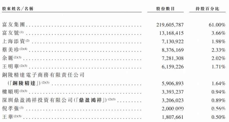 目前,从股权结构来看,富友集团持有富友支付股份的61%,富友号持股3.66%,上海添资持股1.98%,其他65名股东持股33.36%,当中每名股东持有的股权占比在0.02%至2.93%之间。