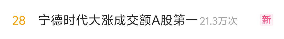 5月21日,“宁王”冲上微博热搜,起因是其今日股价大涨且成交金额位列A股第一。