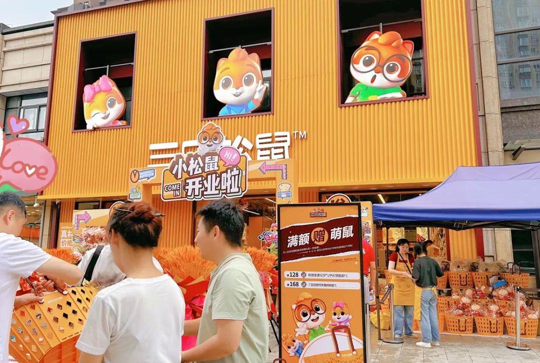 截至2024年底,三只松鼠自身开设门店333家,“爱零食”据称也已开店1800多家。