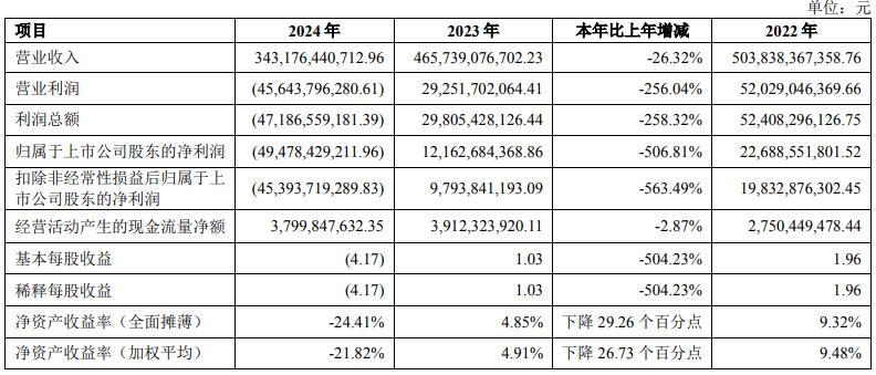 根据万科年报,2024年公司录得净亏损494.8亿元,营收同比下滑26.3%至3431.8亿元,主要因开发业务毛利率下降、资产减值计提及非主业投资亏损。