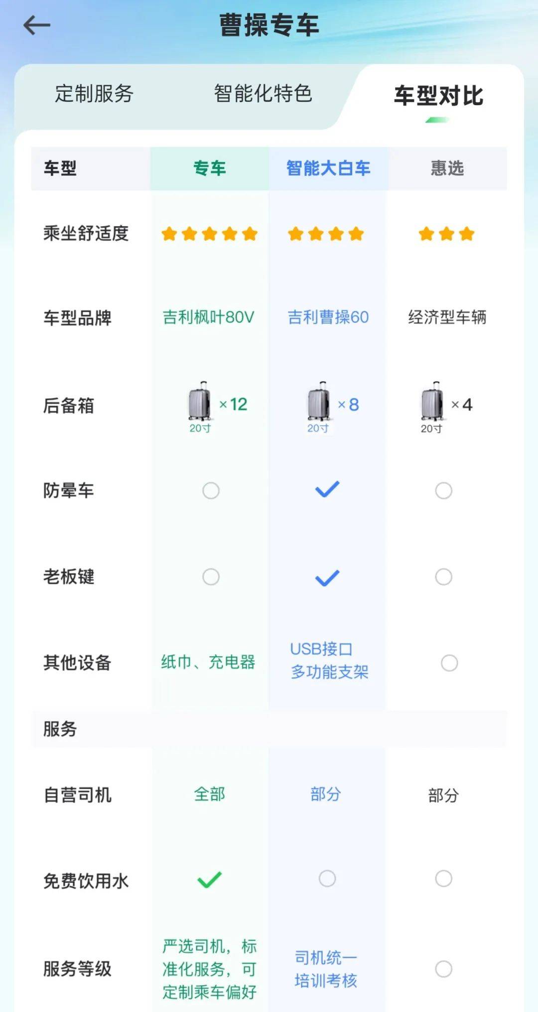 相比之下,曹操出行的体量更大一些,背靠的是汽车行业的巨头吉利集团,依靠出色的乘坐体验,在一二线城市杀出一条路来。
