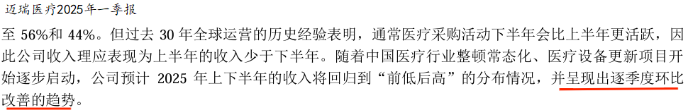而且从过往来看,通常医疗采购活动下半年会比上半年更加活跃,所以公司预计2025年业绩会逐季度环比改善。