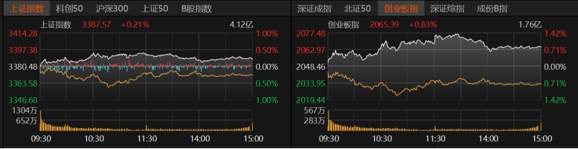 5月21日,沪指收涨0.21%报3387.57点,创业板指收涨0.83%报2065.39点。科创50微跌,沪深300、上证50、北证50微涨。今日,A股市场成交额达1.21万亿元。