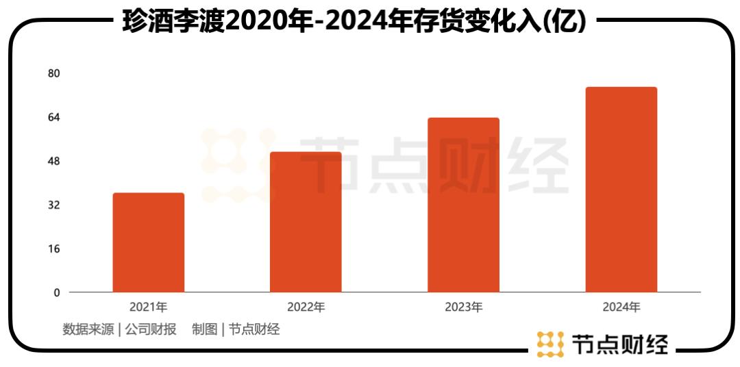 所以,唯一保持增长的李渡,其增长的背后可能伴随着降价和利润的牺牲,增长质量也不容乐观。而在增长乏力背后,珍酒李渡不断走高的库存也值得警惕。数据显示,从2020年-2024年,其存货分别为17.37亿、36.49亿、51.39亿、63.83亿和75.03亿。