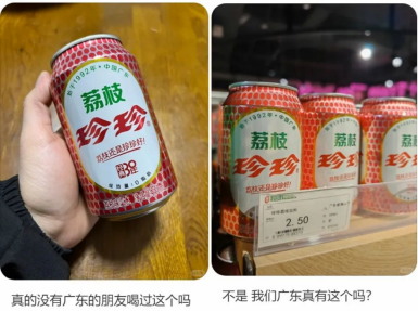 有趣的是,东北“老铁”们特别钟爱口味清新的荔枝饮料,尤其是在冬天,吹着暖气、吃着烧烤,搭配荔枝饮料,别提多清爽了。比如一款来自佛山的荔枝饮料珍珍,很多广东人可能都没听过,却神奇地在东北畅销了许多年。