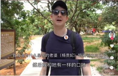 许多外国博主专程打飞的去广东茂名,只为亲口品尝刚从树上摘下来的最新鲜的荔枝。比如,来自美国的博主郭杰瑞就在古荔园,骄傲地宣称自己和杨贵妃有一样的口味,这条视频点赞超过25万。