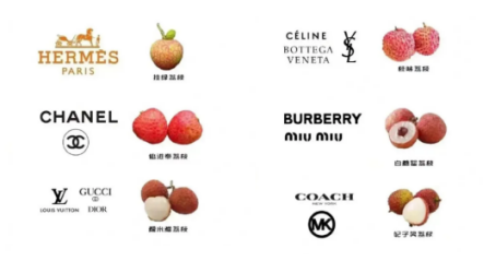 至于“果中贵族”,网上流传着一张“荔枝鄙视链”图,挺有意思。从高到低依次是:挂绿、仙进奉、糯米糍、桂味、白糖罂、妃子笑,对应的奢侈品品牌分别是:爱马仕、香奈儿、LV/古驰/迪奥、思琳/YSL/BV、Burberry/miu miu、Coach/MK。