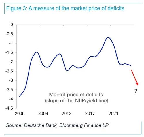 衡量市场对双赤字担忧程度的指标,可通过下图中净国际投资头寸(NIIP)与收益率关系的贝塔值(斜率)来体现。这实质上反映了全球市场对财政赤字的定价。通过历史数据回溯可见,该指标自全球金融危机以来一直保持稳定区间。