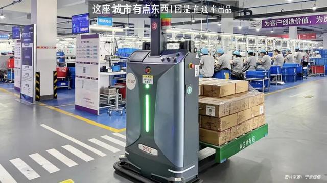 在工厂搬运货物的智能AGV。(图源:“宁波经信”微信公众号)