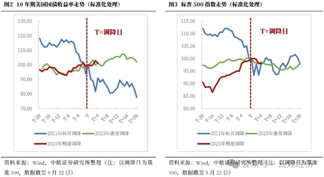 特朗普5月23日建议自6月1日起对欧盟产品征收50%的关税。市场担忧美国关税战或再度升级,消息发布后欧美股市集体下挫。当地时间5月16日,穆迪下调美国主权信用评级。复盘此前另两大评级机构调降美国主权信用评级后的大类资产走势,调降前后美国股、债、汇和黄金四大类资产在短期冲击后均表现较为分化,或显示评级调降的直接冲击或有限,市场恐慌程度与当时基本面背景相关,但或将在短期内放大市场负面情绪。