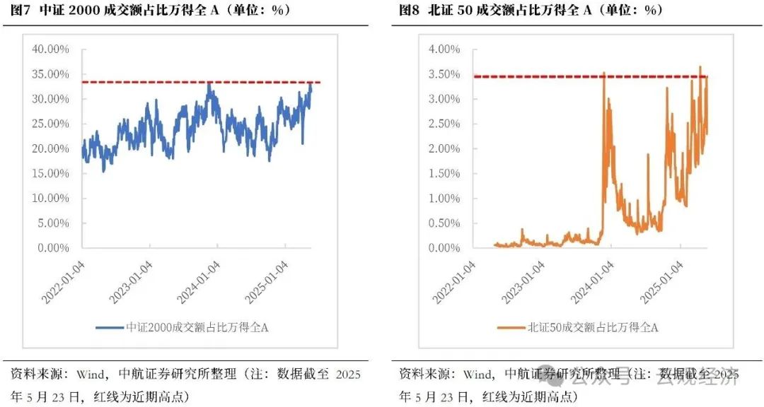 但也需关注到当前A股内部结构上存在一定不确定性。近期小盘及微盘股板块市场情绪持续升温,中证2000、北证50、微盘股指数在本周成交额占比万得全A再度冲高,拥挤度已处于近三年高位,需警惕短期情绪退潮带来的回调风险。