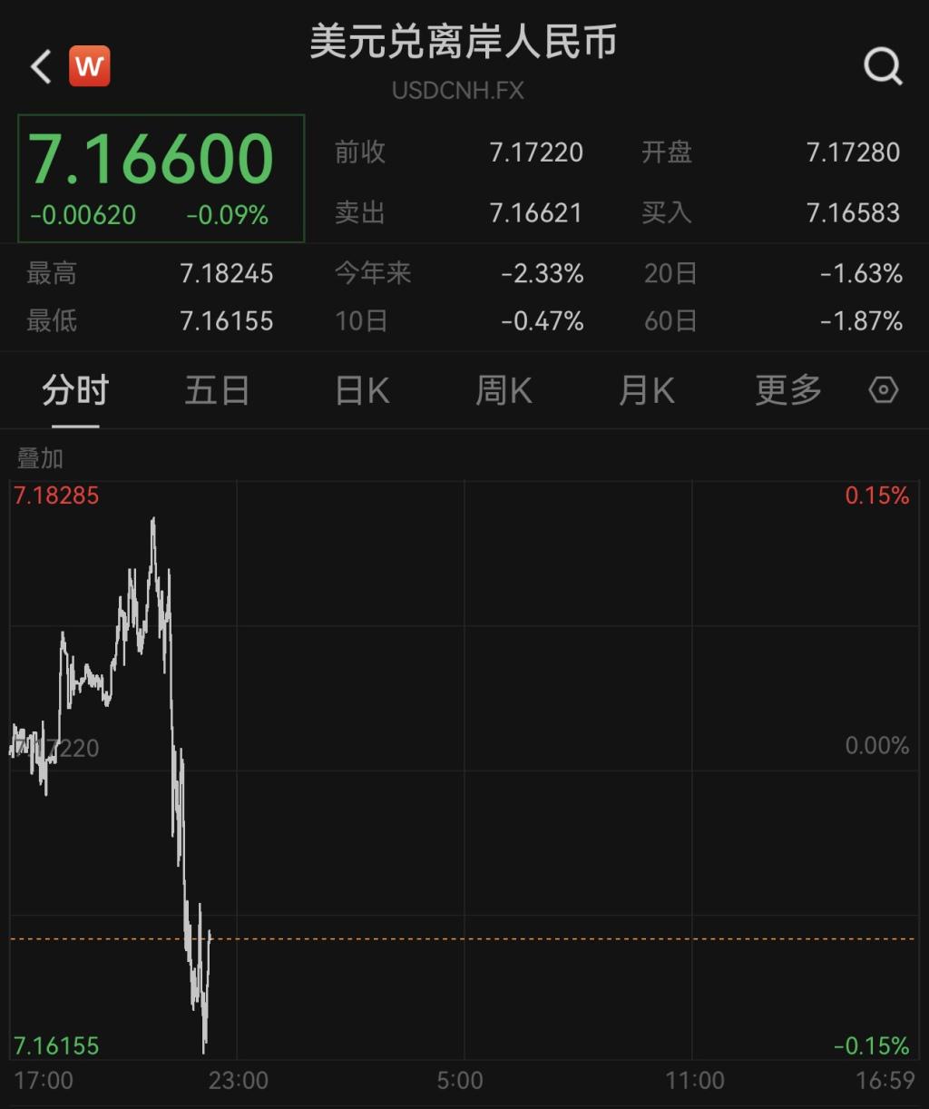 5月26日,人民币对美元即期汇率开盘报7.1700,随后升破这一关口,截至发稿最高升至7.1676,较前一交易日7.1895的收盘价上涨超200点,并创下2024年11月中旬以来的新高。