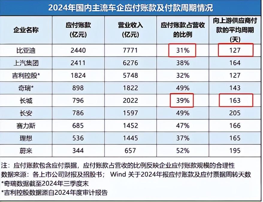但对比各大主流车企拖欠供应商付款周期看,长城本身也不优秀。