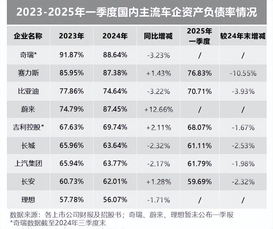 根据目前各大车企公开的财报数据,2024年财年负债率超过90%有一家,其余大多数在60%-80%之间。