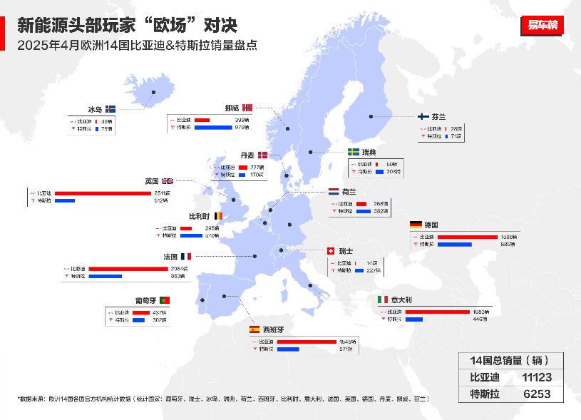 此外,在今年4月,比亚迪在欧洲电动汽车新增登记销量达7231辆,同比上涨169%,首次超越特斯拉。