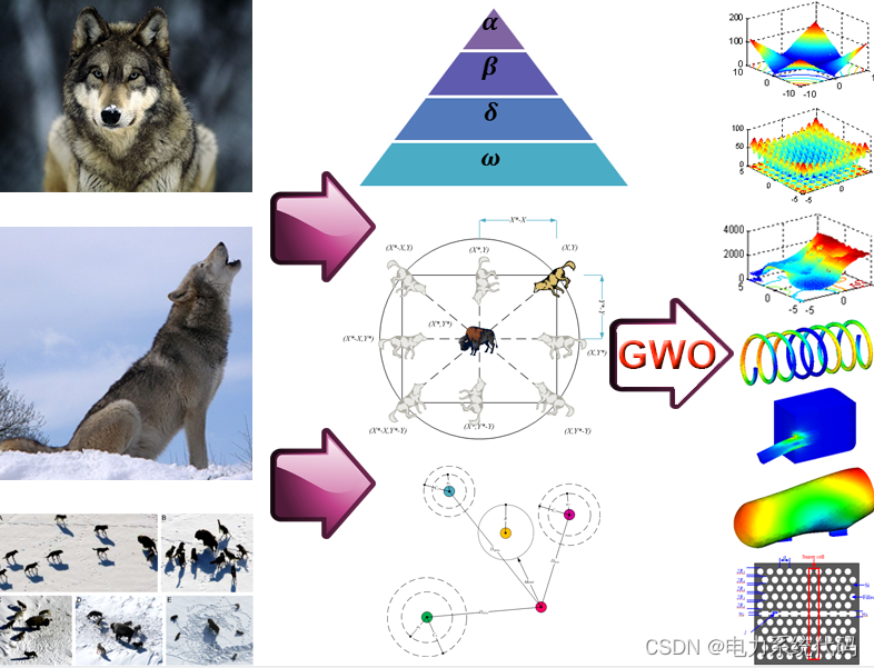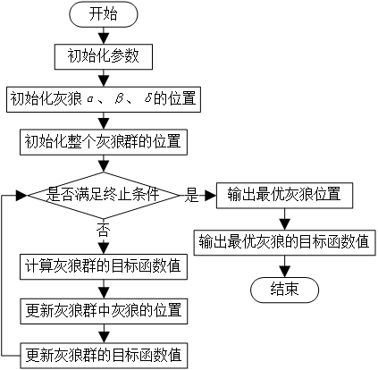 GWO 优化过程包含了灰狼的社会等级分层、跟踪、包围和攻击猎物等步骤,其步骤具体情况如下所示。