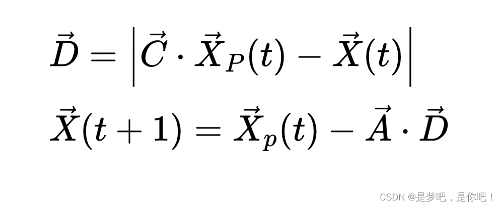 灰狼群体通过以下几个公式逐渐接近并包围猎物: