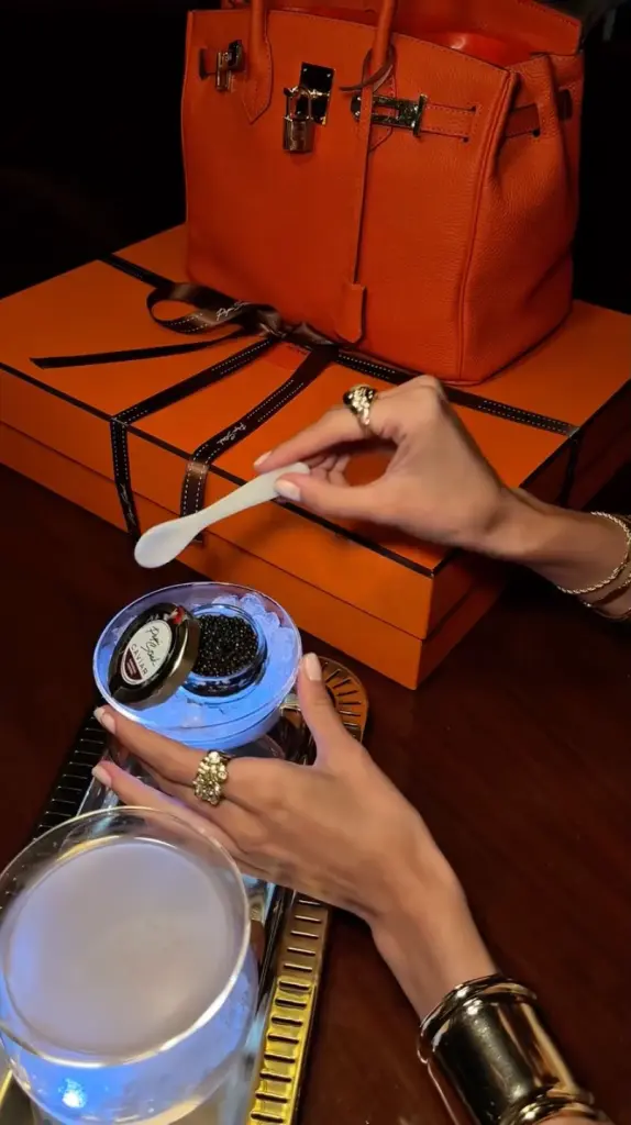 这款名为“这不是包,这是鸡尾酒”的饮品,是用贝弗迪10年伏特加、葡萄柚精油糖浆和里莱特白葡萄酒调制而成,配有桃子装饰和一份鱼子酱,装在一只爱马仕铂金包里。不过,这款奢华饮品不一定要搭配铂金包,单买鸡尾酒只需150美元。