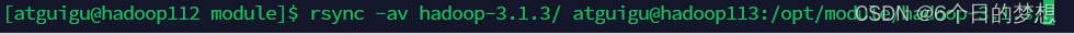 [atguigu@hadoop102 module]$ rsync -av hadoop-3.1.3/ atguigu@hadoop103:/opt/module/hadoop-3.1.3/