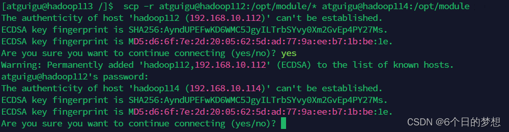 [atguigu@hadoop103 opt]$ scp -r atguigu@hadoop102:/opt/module/* atguigu@hadoop104:/opt/module