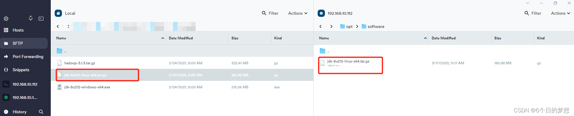 2)用传输工具(Termius/Xshell)将JDK导入到opt目录下面的software文件夹下面