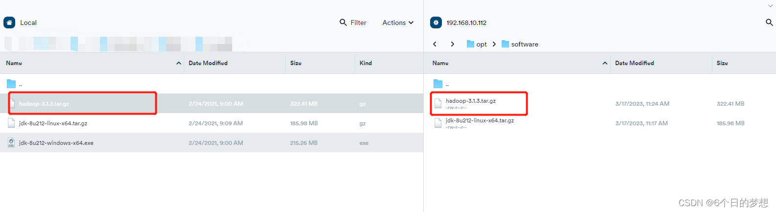 (b)在hadoop113上,将hadoop112中/opt/module/hadoop-3.1.3目录拷贝到hadoop113上。