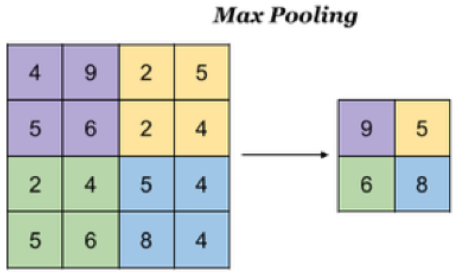 最大池化:Max Pooling, 取窗口内的最大值作为输出