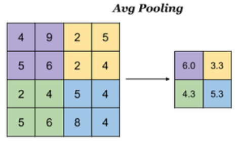 平均池化:Avg Pooling, 取窗口内的所有值的均值作为输出