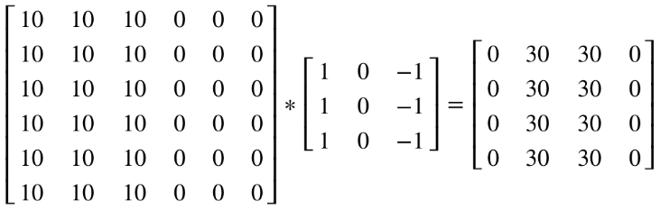 注:虽然看上去非常粗,是因为我们的图像太小,只有5个像素长、宽,所以最终得到结果看到的是两个像素位置,如果在一个500 x 500的图当中,就是一个竖直的边缘了。