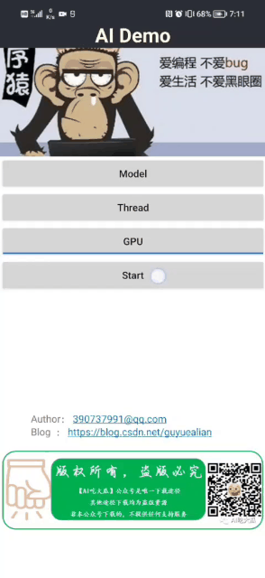 - 所有依赖库都已经配置好,可直接build运行,若运行出现闪退,请参考dlopen failed: library “libomp.so“ not found 解决。