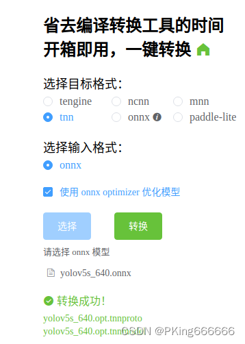 - (2)一键转换,懒人必备:一键转换 Caffe, ONNX, TensorFlow 到 NCNN, MNN, Tengine (可能存在版本问题,这个工具转换的TNN模型可能不兼容,建议还是自己build源码进行转换,2022年9约25日测试可用)