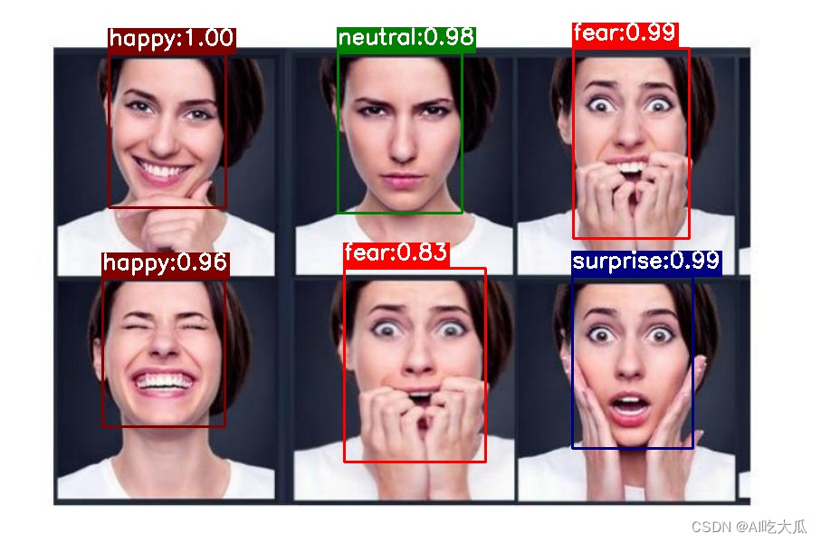 如果你需要面部表情识别的训练代码,请参考:《面部表情识别2:Pytorch实现表情识别(含表情识别数据集和训练代码)》https://blog.csdn.net/guyuealian/article/details/129505205