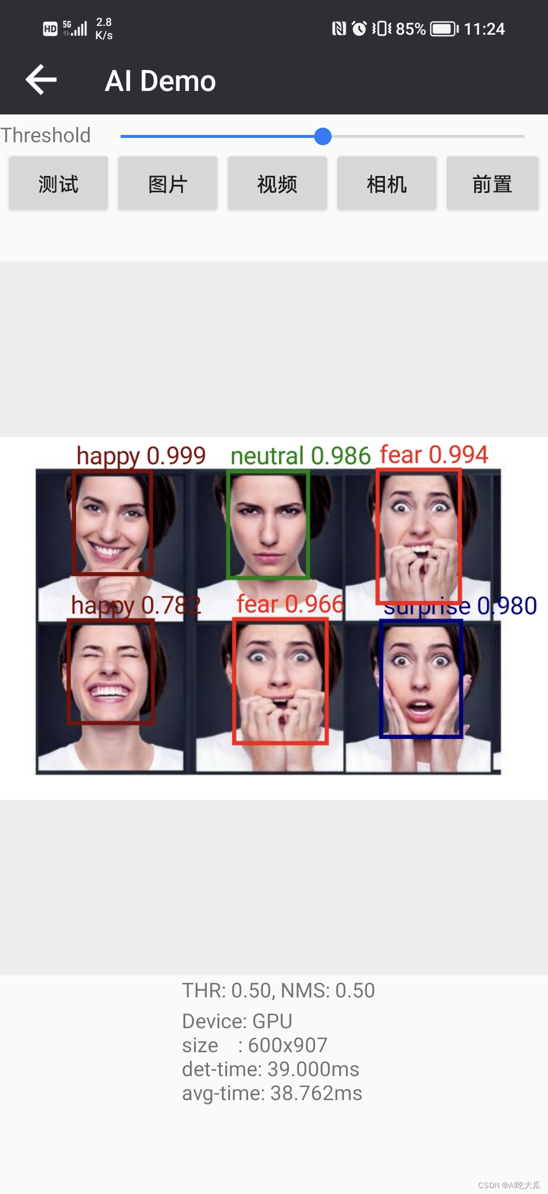 先展示一下Android版本表情识别Demo效果: