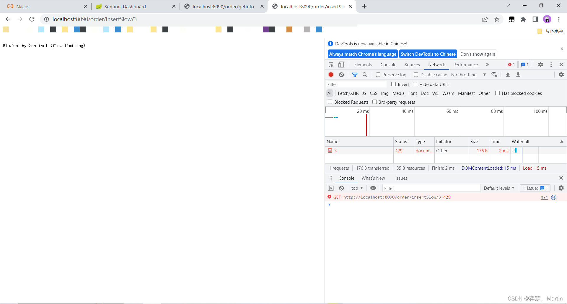 使用id为1进行多次测试(超过5次)这个时候会出现429,已经熔断