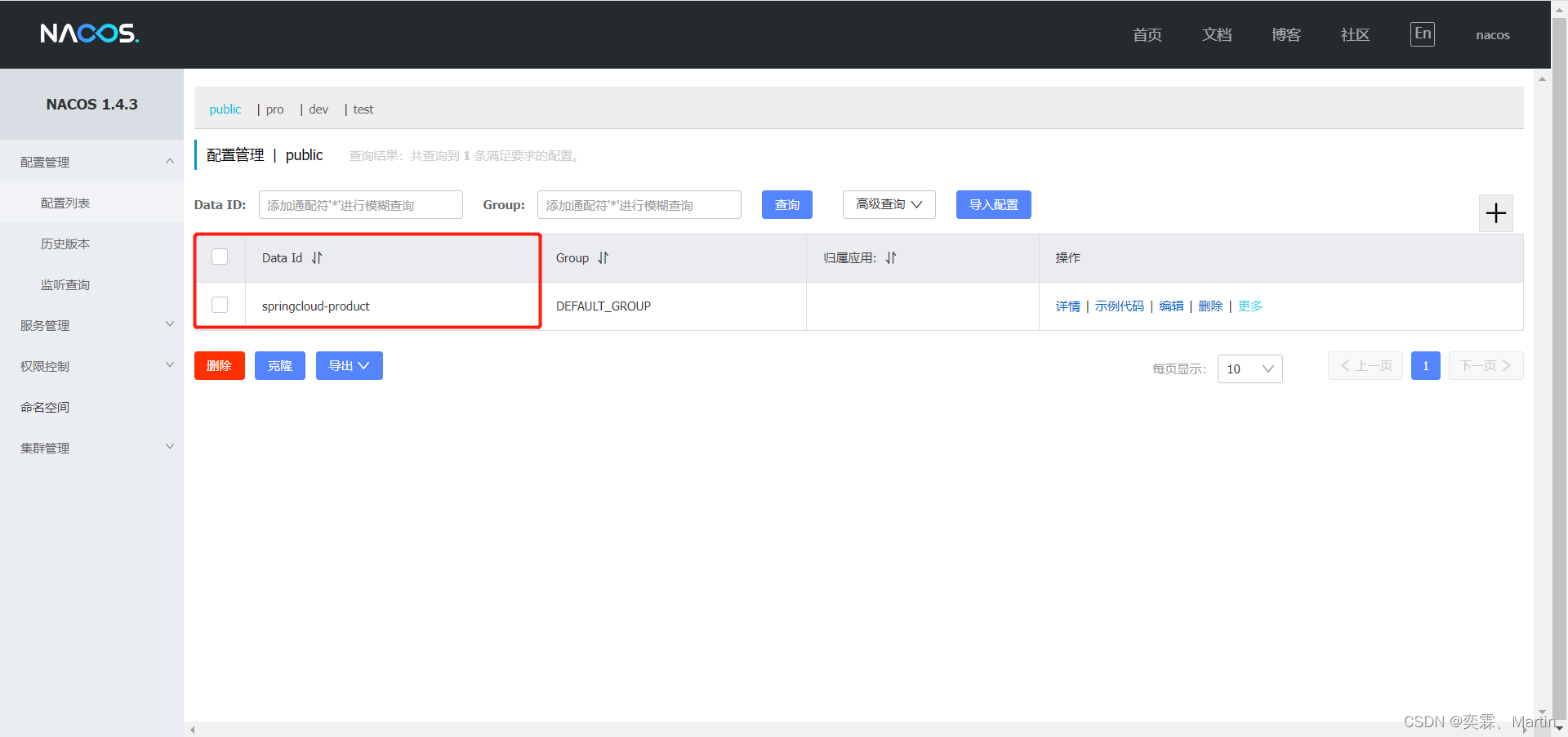 然后查看nacos配置中心