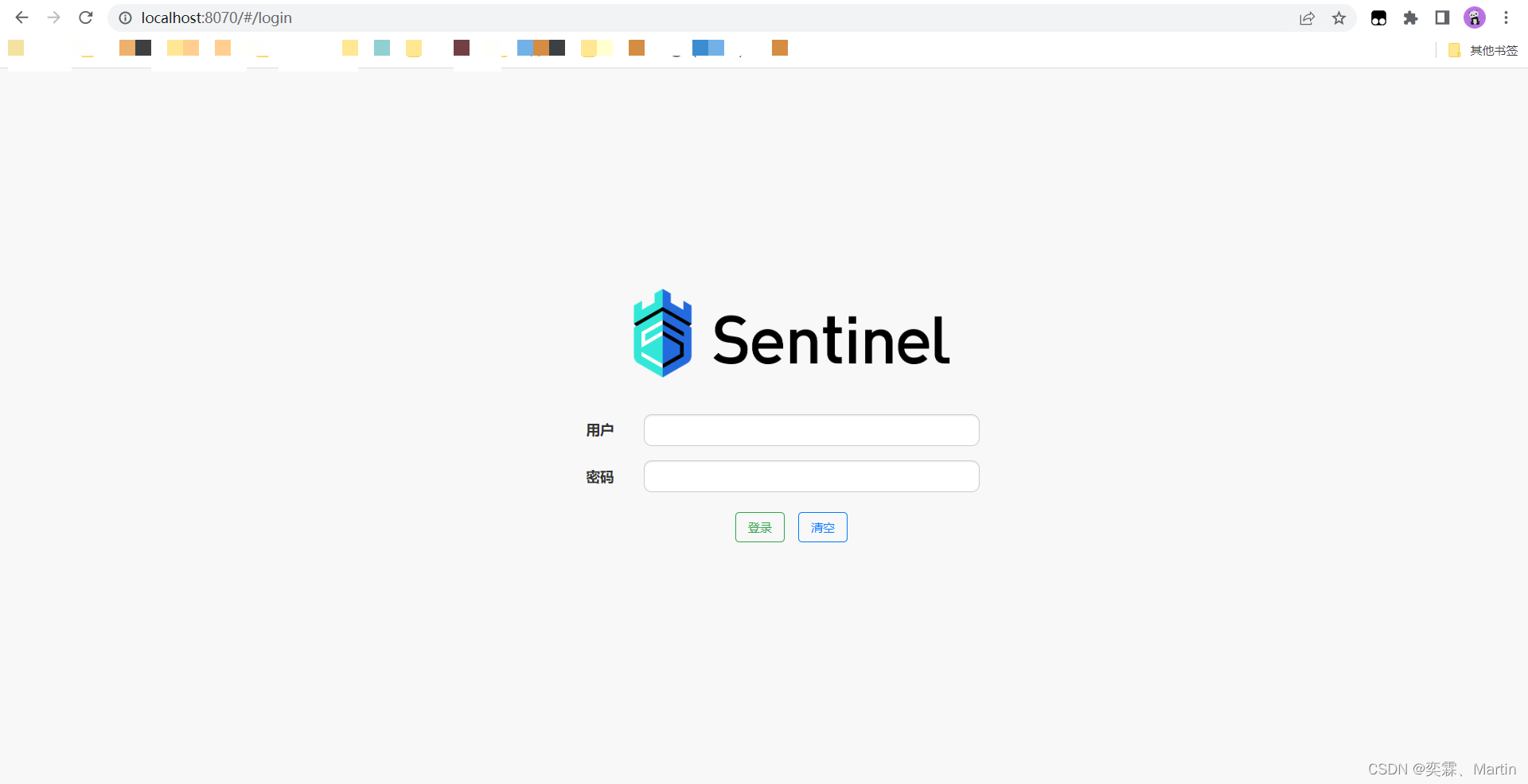java -Dserver.port=8070 -Dnacos.serverAddr=localhost:8848 -jar sentinel-dashboard.jar # -Dserver.port 控制台端口号 # -Dnacos.serverAddr: nacos 地址 # -Dnacos.namespace: 你项目所在的 nacos 命名空间 如果命名空间就是public可以省略该参数5、访问sentinel界面