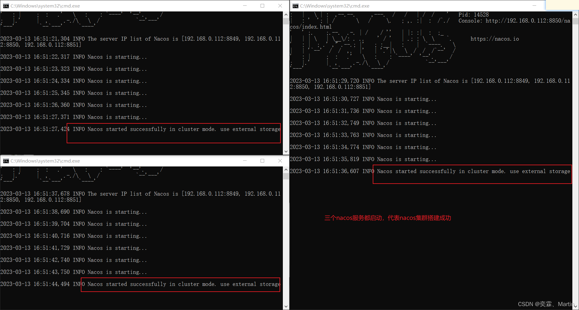 启动这三个nacos服务,进行集群测试